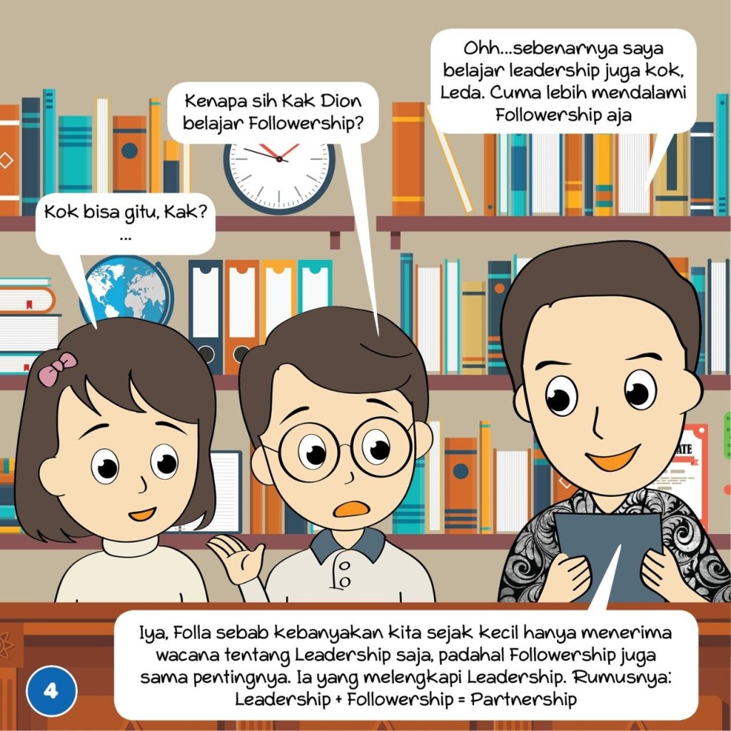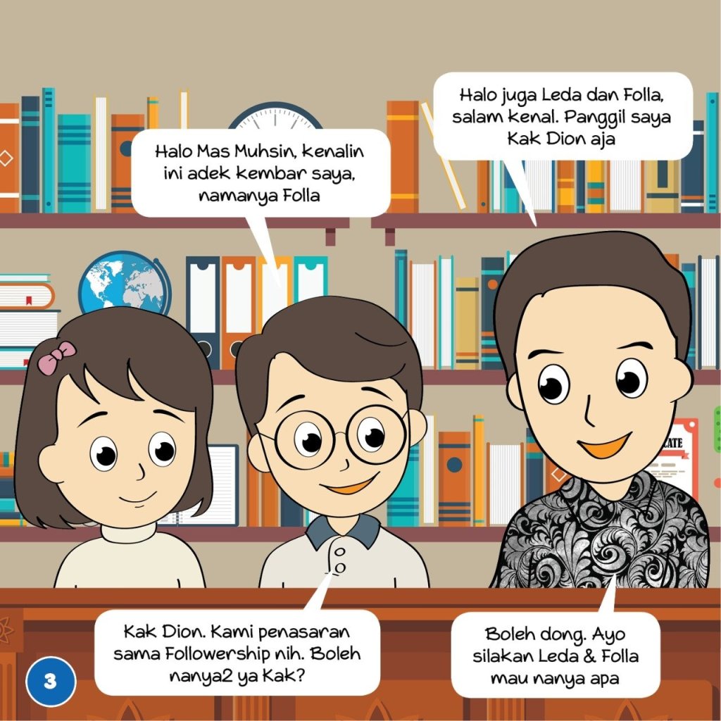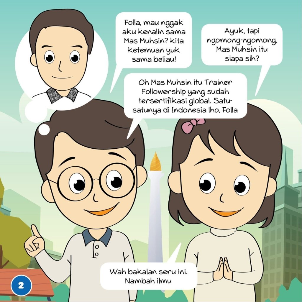 Bersama seorang kawan yang berpengalaman belasan tahun membuat ilustrasi, karikatur maupun gambar kartun/animasi pada akhirnya muncullah Leda & Folla. Karakter kartun yang merupakan kakak beradik kembar fraternal yang memiliki curiousity besar untuk mempelajari leadership-followership. Dengan kehadiran Leda & Folla kami berharap belajar followership-leadership akan lebih menarik dan simple. Terutama untuk segmentasi anak dan remaja. Oh iya, ini baru seri pertama dari serial belajar followership dimana targetnya akan dibuat sebanyak 20 seri. Mohon doa dan support Kawan2 semua agar kami bisa terus berkarya dan meyelesaikan serial Leda & Folla secepatnya. Terimakasih, salam Followership!.